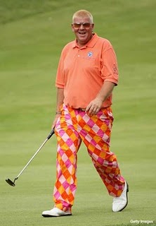 I feel the biggest challenge in a golf wardrobe is to find the balance between boring and obnoxious. Case in point… Tiger Woods’ monochromatic dirty snowman look at the US Open = boring. John Daly’s orange plaid explosion at the Open de Espana = obnoxious.